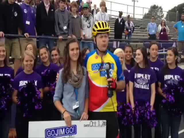 Le Bonheur patient and Ripley High School student presents her school’s AWESOME donation of $2000 to Go Jim Go!