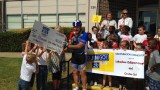Friday afternoon, principal Melinda Crockett presented Jim Jaggers with a check for the results of all that giving: $2,124.
