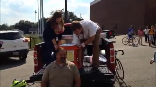 Students at Halls High School decided to use it as a fundraising idea for Go Jim Go. Students donated money towards a goal. If they reached the goal, the school’s on-campus police officer had agreed to have ice water dumped on him.