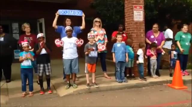 The school made a donation of more than $600 to Go Jim Go Friday afternoon when the riders visited.