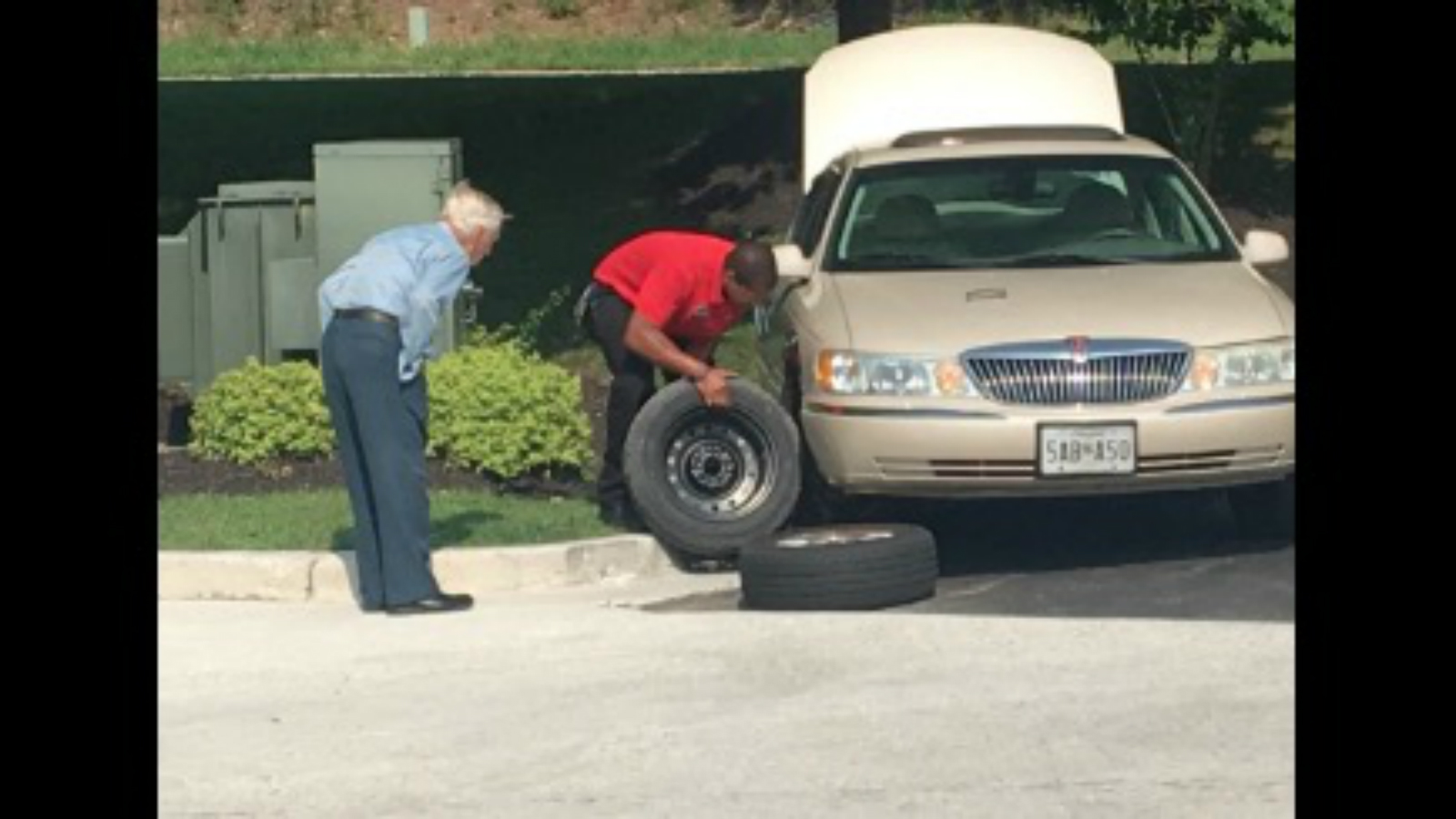 It took Howard about 15 minutes to change the tire. He didn’t know Somoza had taken pictures until later.