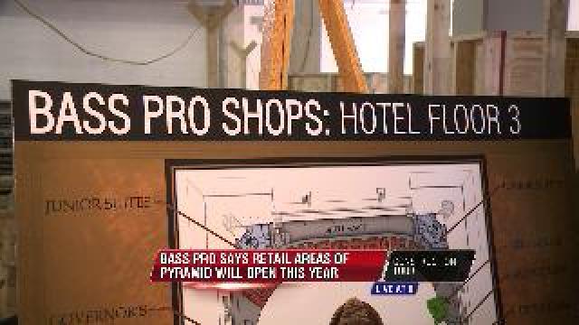 Bass Pro Shops showed off plans for its 100 room hotel inside the Pyramid, along with an observation deck and restaurant on top of the building, a giant aquarium, bowling alley and waterfall, an archery range and retail stores.