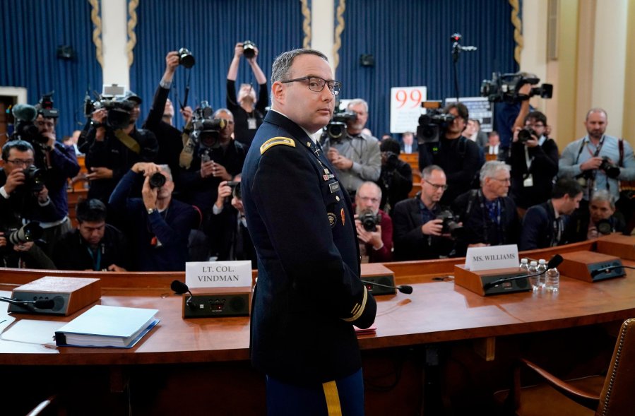 WASHINGTON (AP) — The decorated soldier and national security aide who played a central role in the Democrats’ impeachment case against President Donald Trump was escorted out of the White House complex on Friday, according to his lawyer, who said he was asked to leave for “telling the truth.”