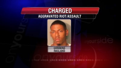 Cordero Ragland, 23, was arrested Wednesday on charges of aggravated riot and assault with bodily harm.