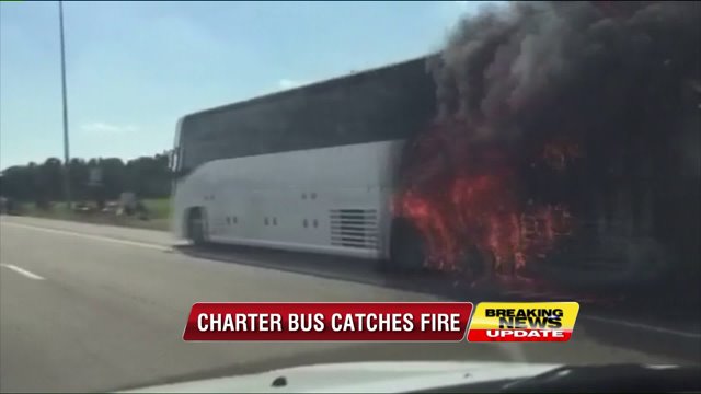 Charter bus bursts into flames on I-40