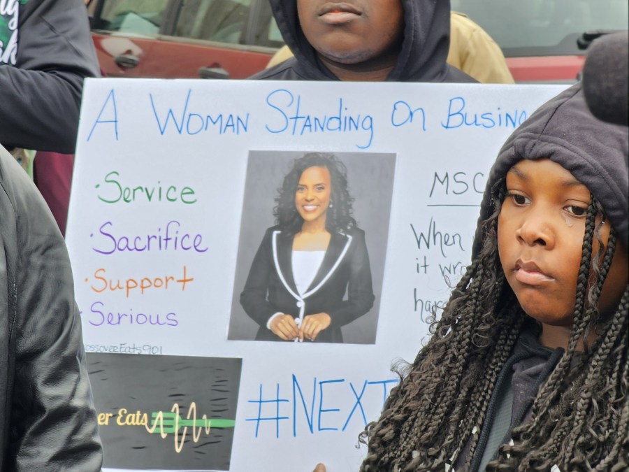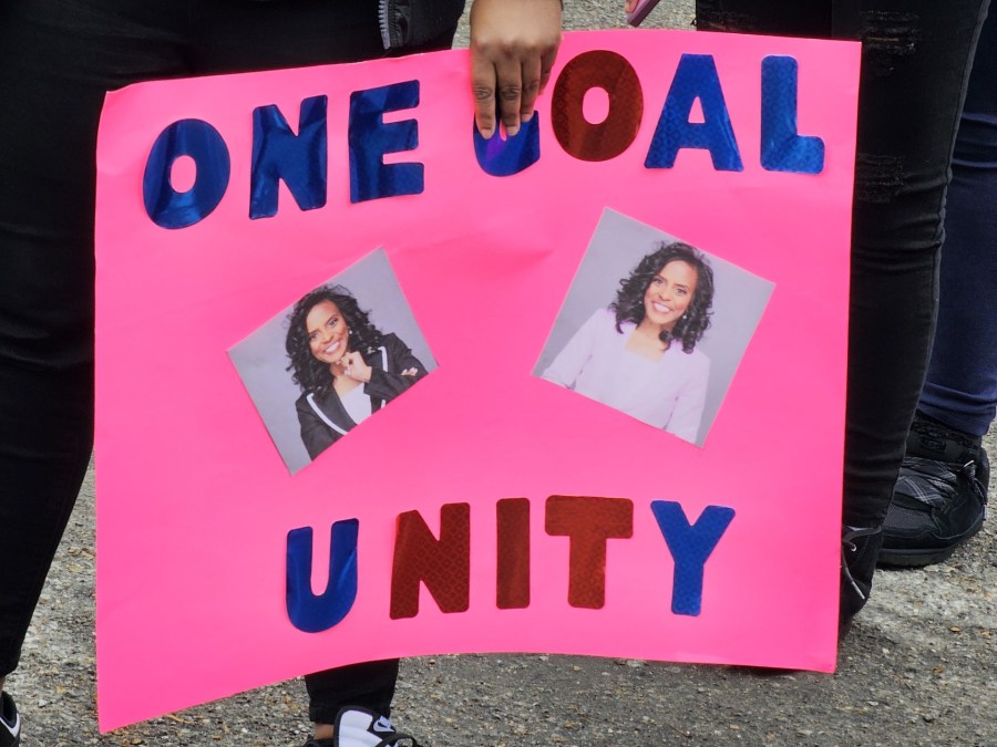“We have a leader that’s impactful, invested, committed, educated and the person for the job,” organizer Porsha’ Toney said. “That’s what we want. We want Dr. Marie Feagins.”