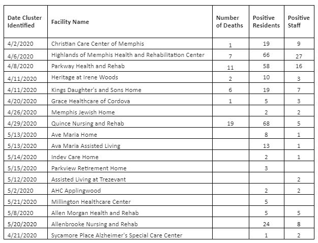 The Shelby County Health Department is tracking clusters in several other facilities.