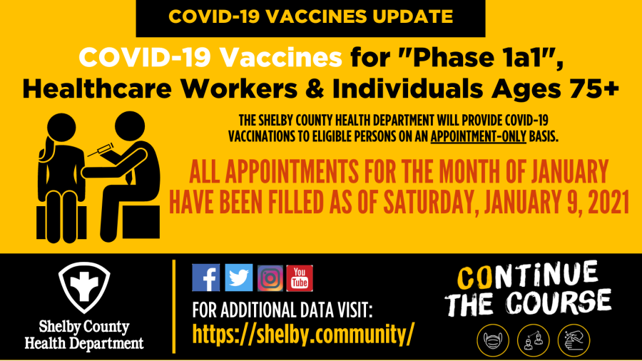 NOTE** All appointments are now filled for January. The Shelby County Health Department will continue to provide daily updates and will announce when more appointments are available.