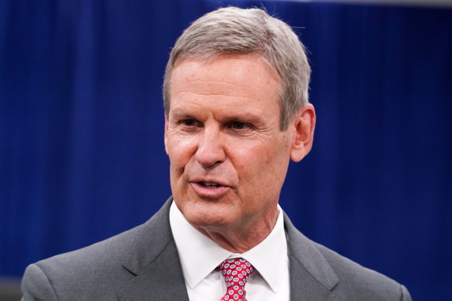 File-This Nov. 10, 2020, file photo shows Tennessee Gov. Bill Lee speaks with reporters in Nashville, Tenn. Lee has tweeted that his wife has mild symptoms of COVID-19 after testing positive for the coronavirus. The Republican governor said Saturday, Dec. 19, 2020, that he has tested negative for the virus but will be quarantined at the Governor’s Residence out of an abundance of caution. (AP Photo/Mark Humphrey, File)