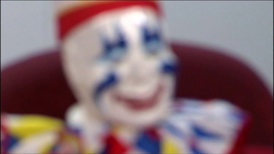 The “clown” was described as wearing white overalls, white gloves, red shoes with red bushy hair, a white face and a red nose.