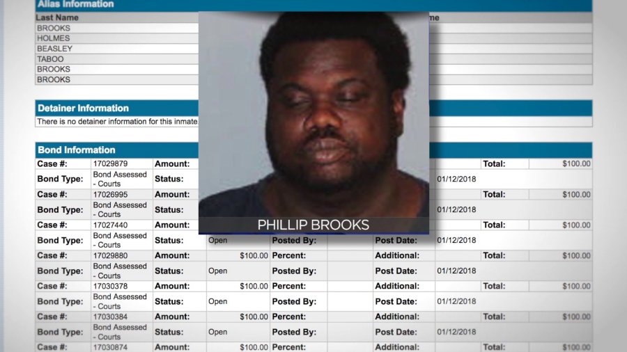 Brooks, who we learned also goes by six aliases, is accused of going on a crime spree.