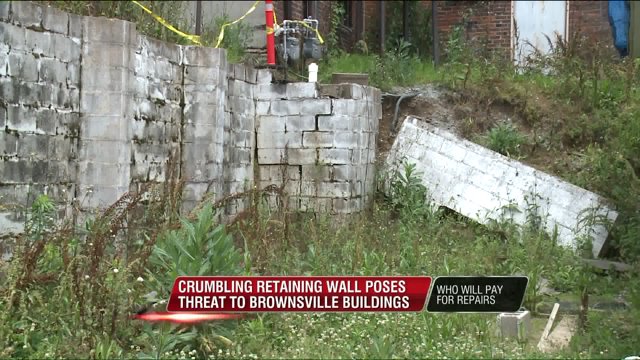 Crumbling retaining wall poses threat to historic Brownsville buildings
