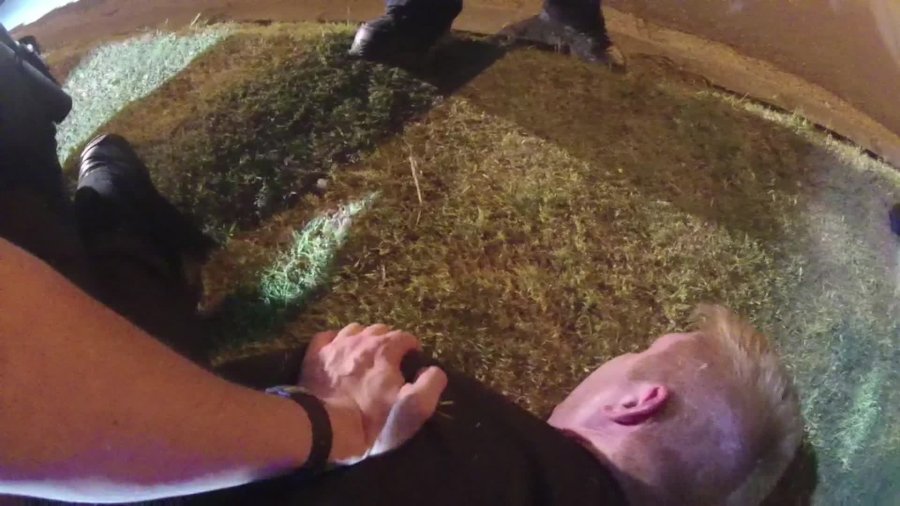 The footage shows Timpa, his face down in the grass, falling unconscious. The officers can be heard making jokes about Timpa falling asleep and about waking him up for school. One officer appears to mimic a teenager, saying: “I don’t want to go to school! Five more minutes, Mom!”