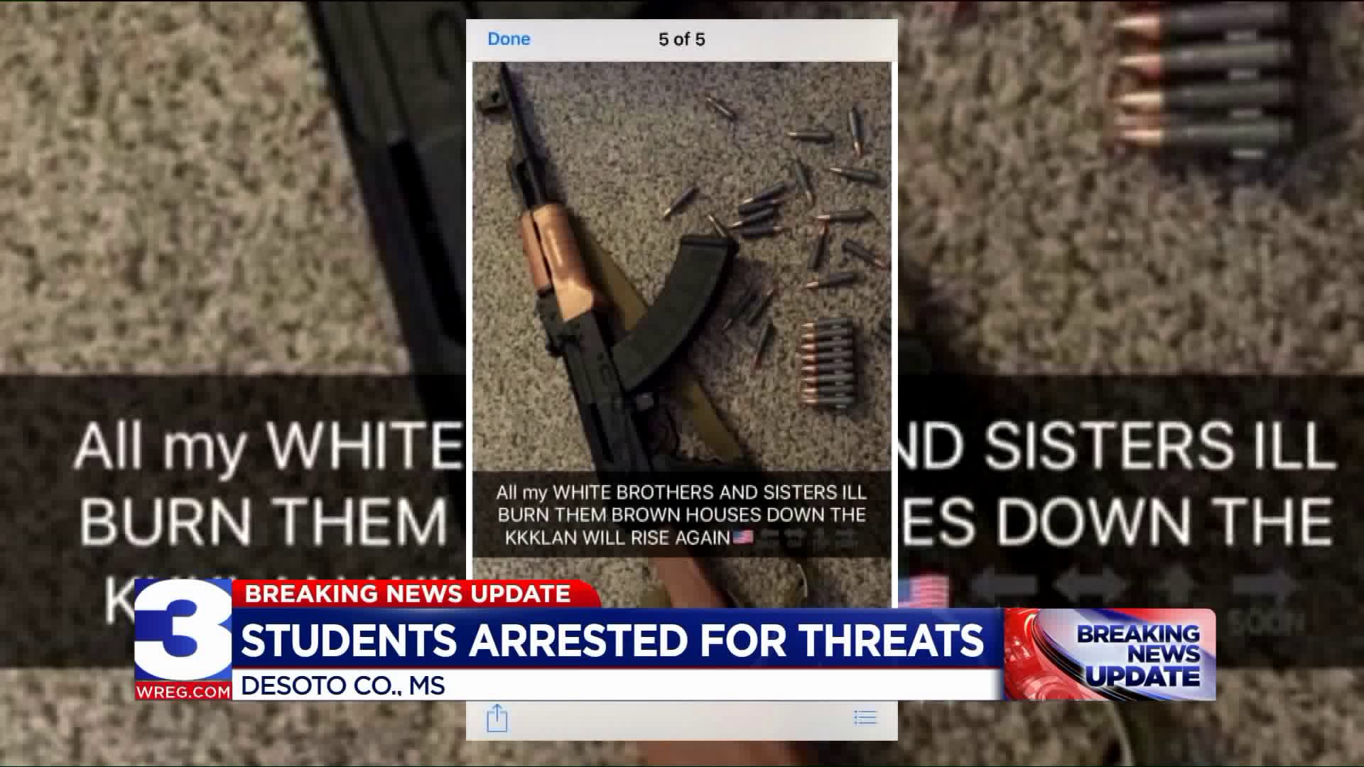DESOTO COUNTY, Miss. — The Desoto County Sheriff’s Office confirmed they arrested two juvenile students who are accused of making online threats against students at Center Hill High School.