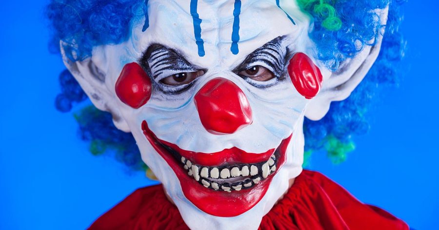 The teachers told police the person had a white face and was wearing a bright red wig, a red nose, a yellow T-shirt and dark pants.