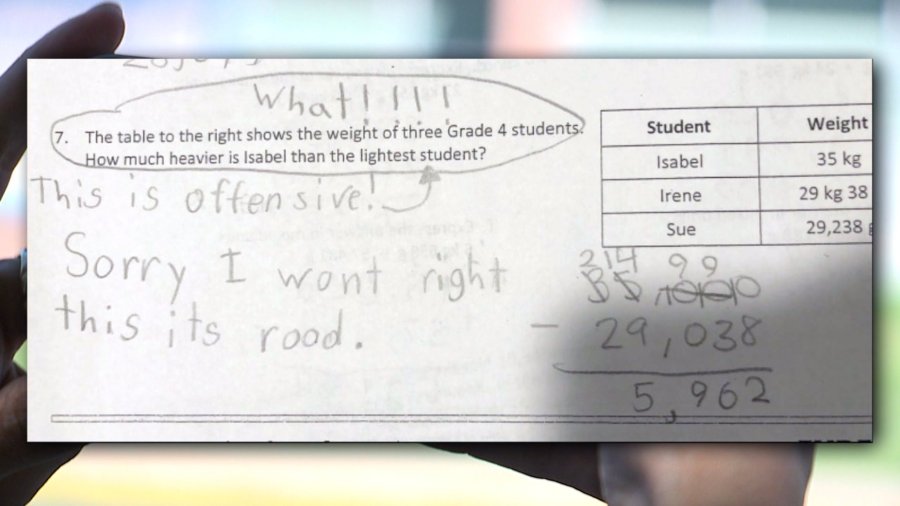 “I don’t want to be rude, but I think that math problem wasn’t very nice, I thought that was judging people’s weight. Also, the reason I didn’t write a sentence is because I just didn’t think that was nice,” Rhythm read from the letter which she since got back from her teacher.