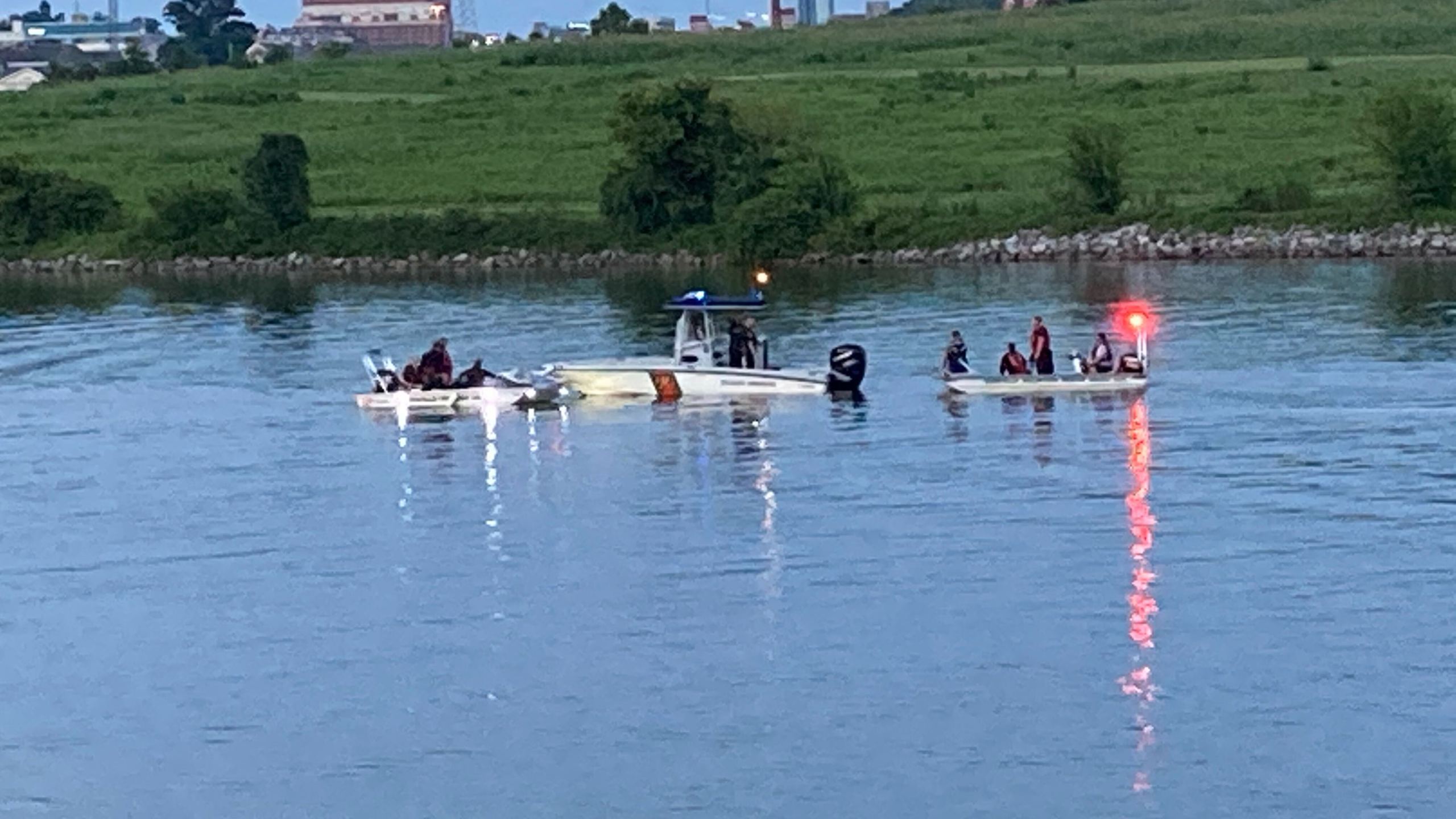 The agency said nearby residents called authorities after the crash happened around 7:40 p.m., and the fire department sent crews into the water to search for the fourth victim.