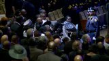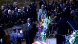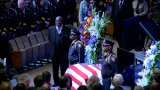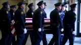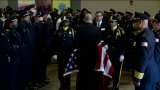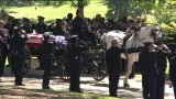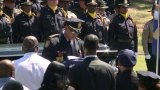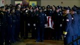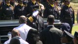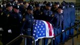 Officers lined the path in a final salute as his casket was brought in front of his family.