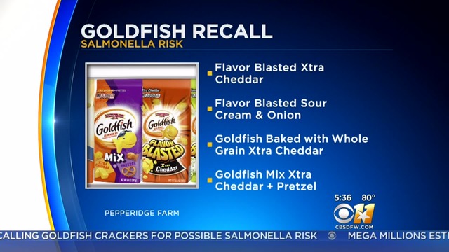 NORWALK, Conn.— Pepperidge Farm is voluntarily recalling four varieties of Goldfish Crackers because of fears they could potentially have salmonella.
