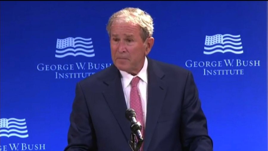 Former President George W. Bush condemned bigotry and white supremacy Thursday morning while endorsing policies that run counter to those supported by President Donald Trump.