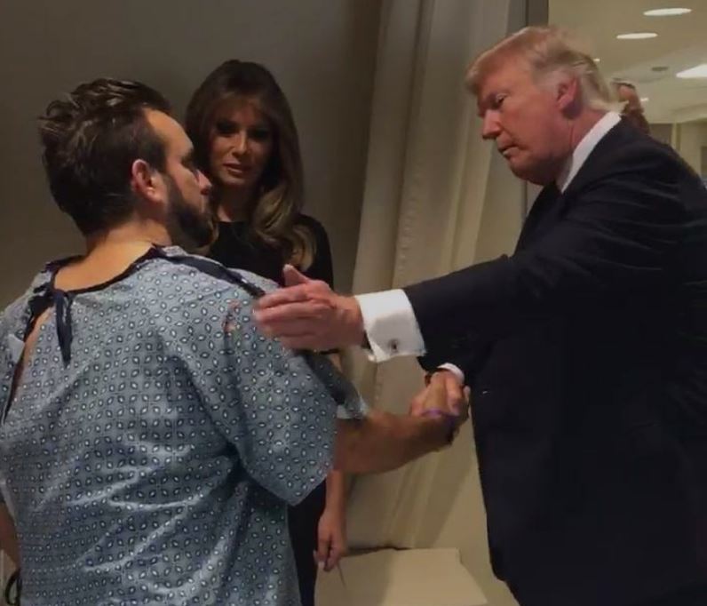 As Trump neared Gunderson’s hospital room, the wounded man made it a point, despite his leg injury, to stand up when the President entered his room.