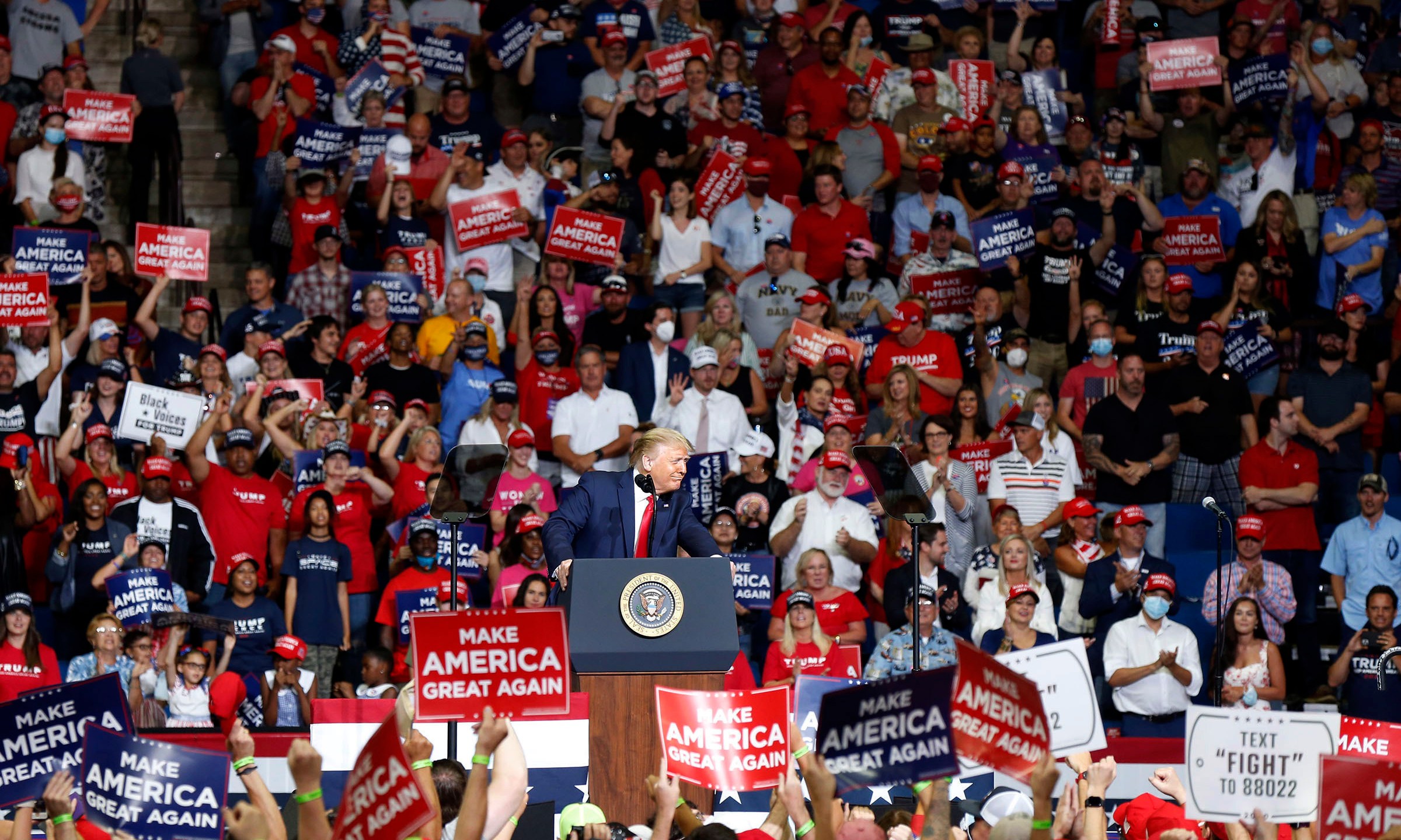 Although masks were provided to rally goers, there was no requirement that participants wear them, and most didn’t.