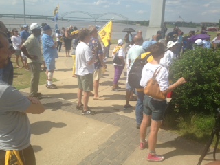 “Four more years,” chanted the group of over 125 people in Tom Lee Park Saturday afternoon.