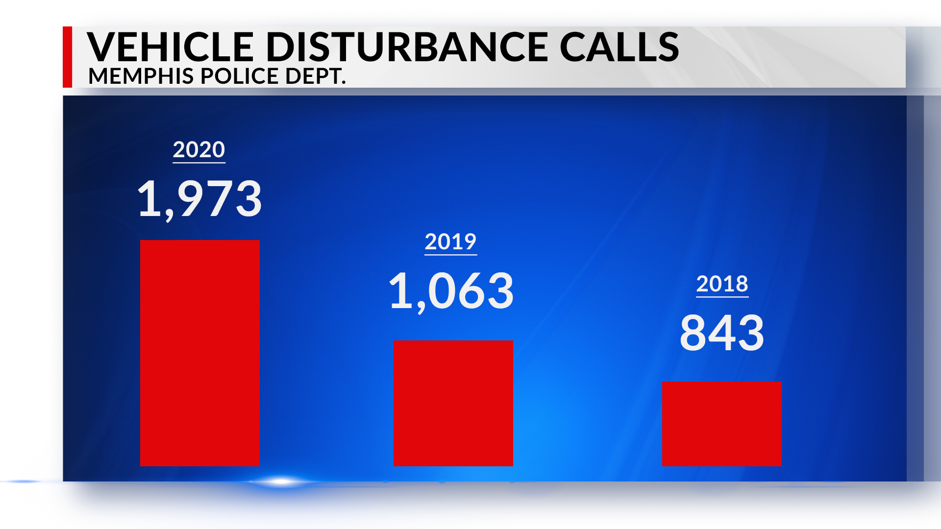In 2020, Memphis Police received 1,973 calls for a vehicle disturbance. That’s more than the number of calls in 2019 (1,063) and 2018 (843) combined.