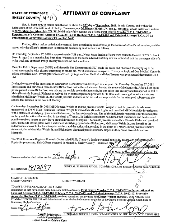 Police say in September 2018, she and two young men were riding around downtown looking for someone to rob when they spotted Greater Memphis Chamber CEO Phil Trenary. They ended up shooting him.