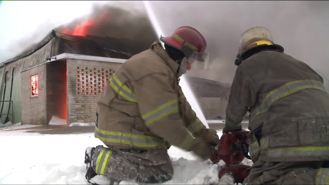 Fire crews fought the flames with icy water once they could find the hydrants buried in nearly a foot of snow. Their goal: keep it under control and stop it from spreading to nearby businesses, as there were concerns about some dangerous chemicals inside.