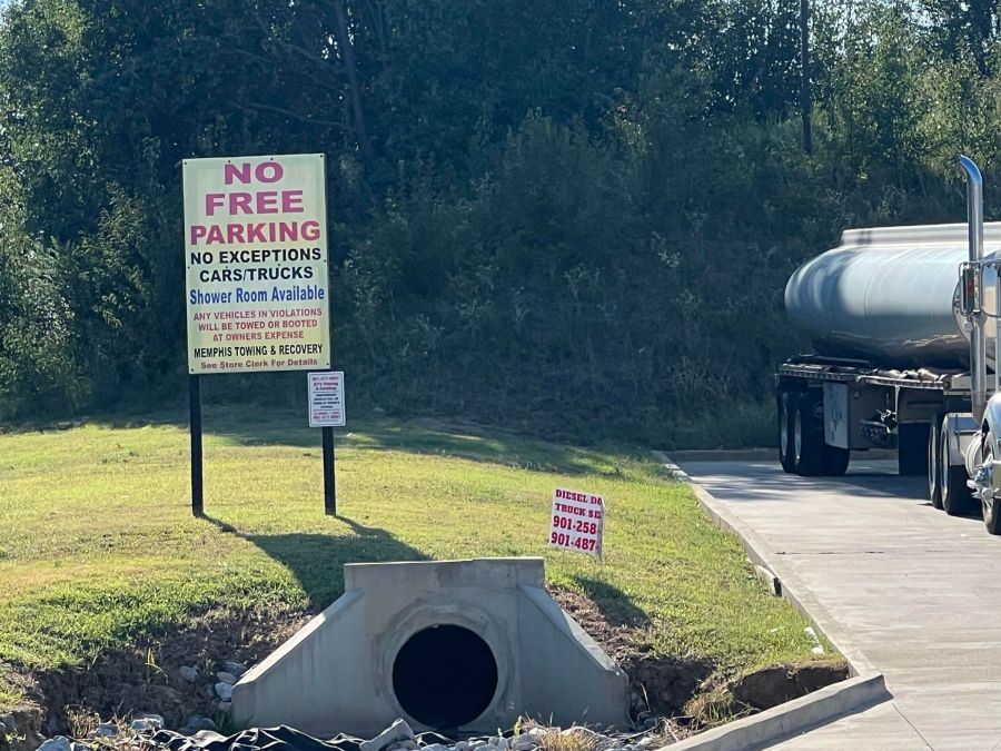 There are also signs that say no free parking for truck drivers. However, a clerk inside Holmes Express said truck drivers buying gas and food are not required to pay to park.