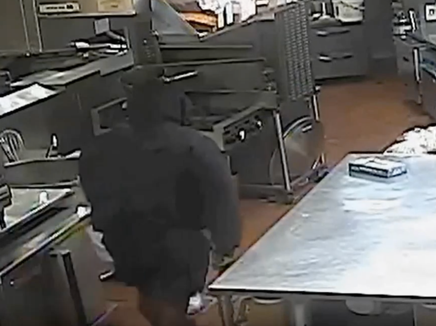 The video continues inside as the suspect walks through the kitchen area holding a bag. According to court documents, the manager of the store said “I’ll give you what you want, just don’t hurt me.”