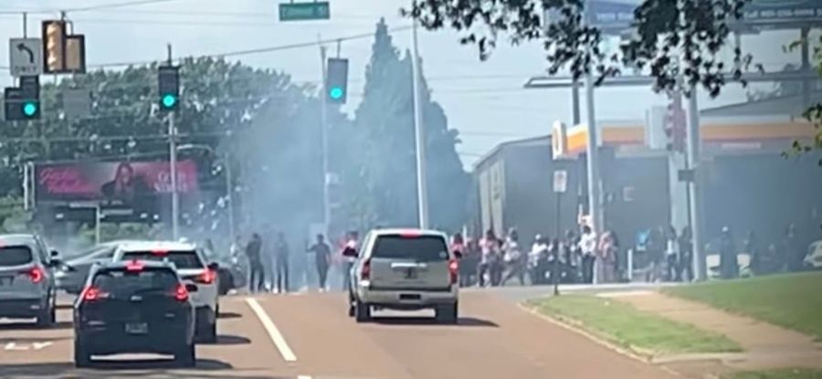In the video, you can see smoke in the intersection and people recording the action.