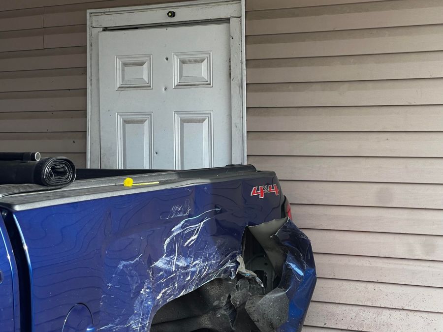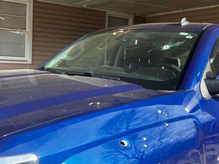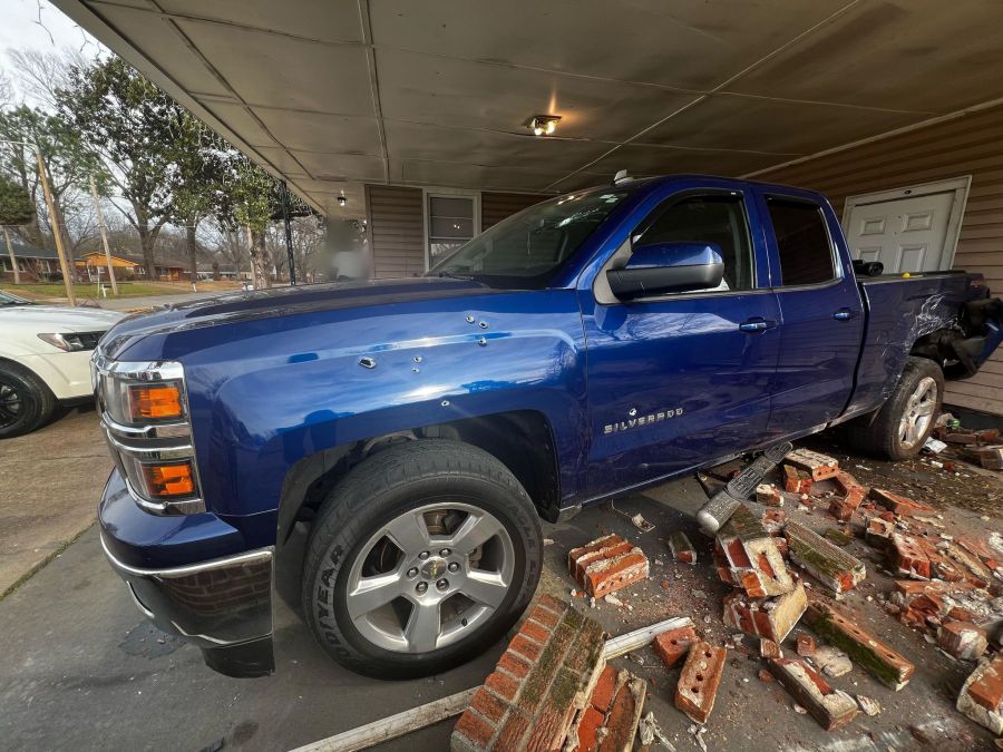 The man’s Chevy Silverado, parked in the carport, was damaged in the crash. There are also a dozen bullet holes in his truck and house. He said one bullet went inside his home, and he’s thankful no one was hurt.