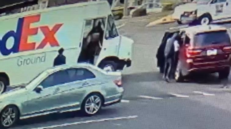 Surveillance video shows a maroon SUV pulling up alongside a FedEx van. Several men in ski masks and black clothing get out. According to Memphis police, the suspects were armed.