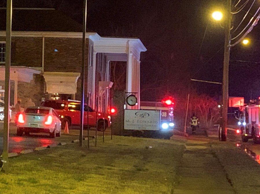 Fire investigators were at the scene outside of the MJ Edwards Funeral Home building on Elvis Presley around 1 a.m.