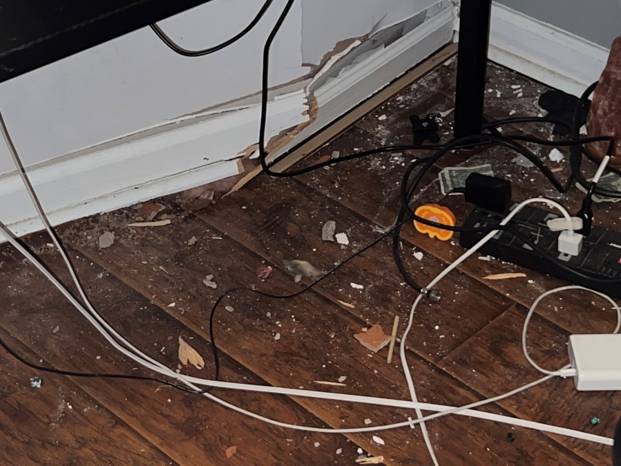 Johnson was home with his wife and young daughter at the time. He was sitting at his desk watching a basketball game when the car hit the wall on the other side of the desk.