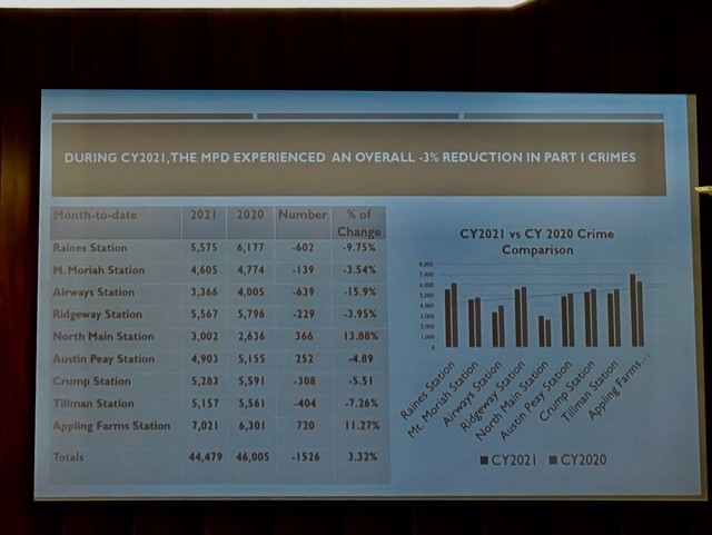MEMPHIS, Tenn. — Despite the number of homicides we continually hear about, Memphis Police said it saw a 3% reduction in serious crimes from 2020 to 2021.