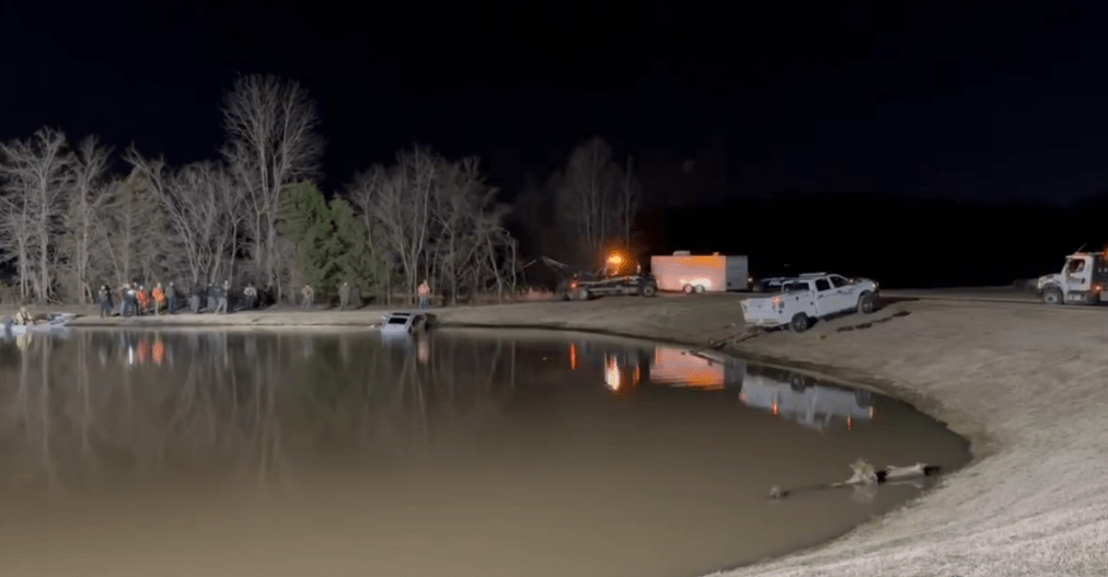 Images from the Shelby County Sheriff’s Office show the massive scene around the water in the back of a neighborhood off Walnut Grove, by a dirt road near Grays Mill Drive.
