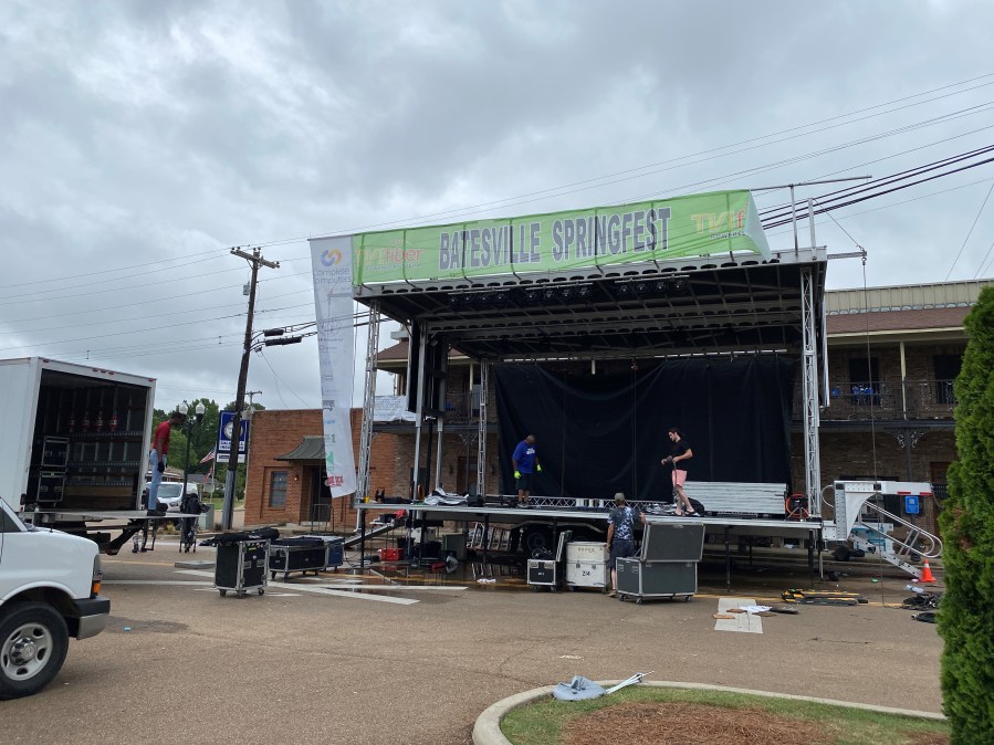 Crew members were seen cleaning up what’s left of the annual Batesville Springfest located in the town square on Sunday morning.