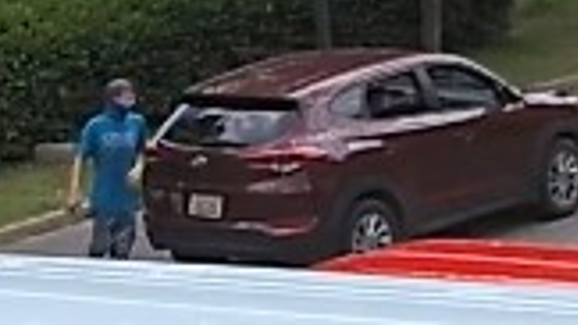 The suspects arrived in a burgundy SUV and were caught on camera.