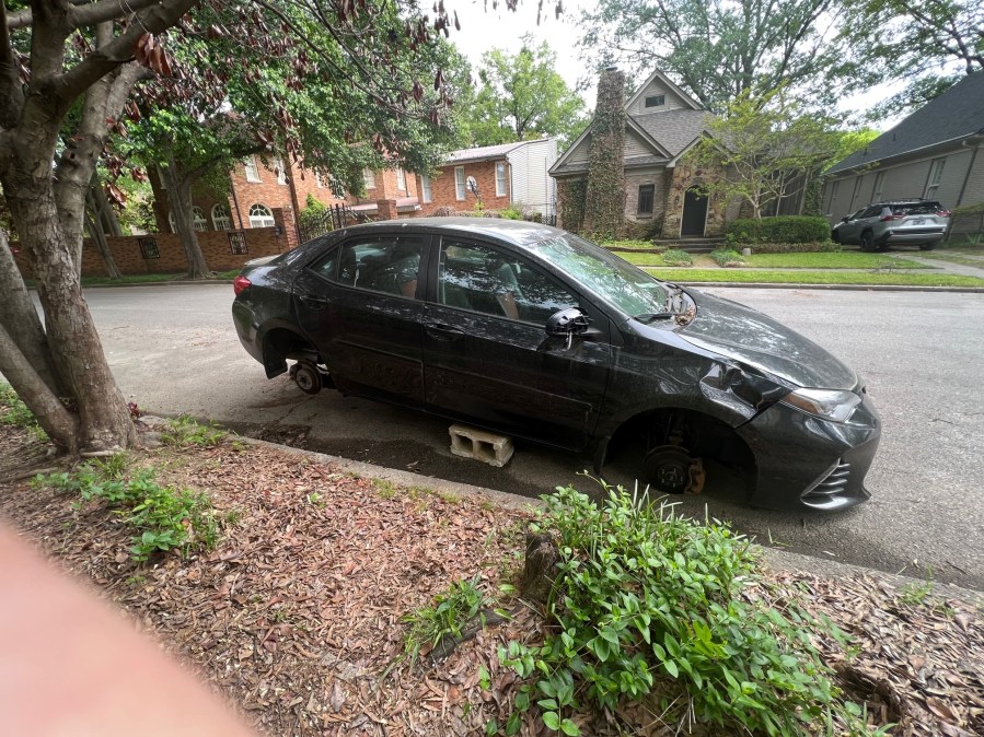 A post about the tire theft is getting a lot of attention on Nextdoor, where someone posted a picture of another car on Kimbrough that was stripped of its tires and rims on April 15 within a few hours.