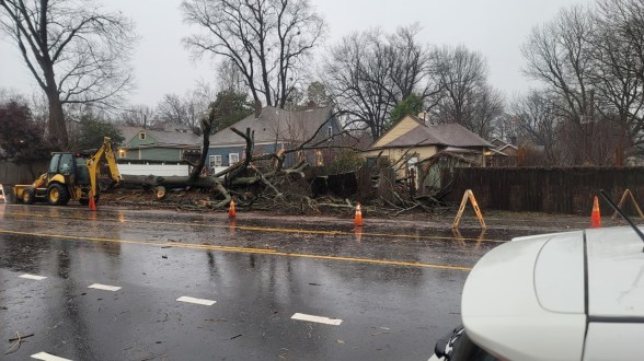 Heavy rain and strong wind brought down trees and electric poles across Memphis on Tuesday. Flash flooding made it difficult to see obstacles in the roadway.