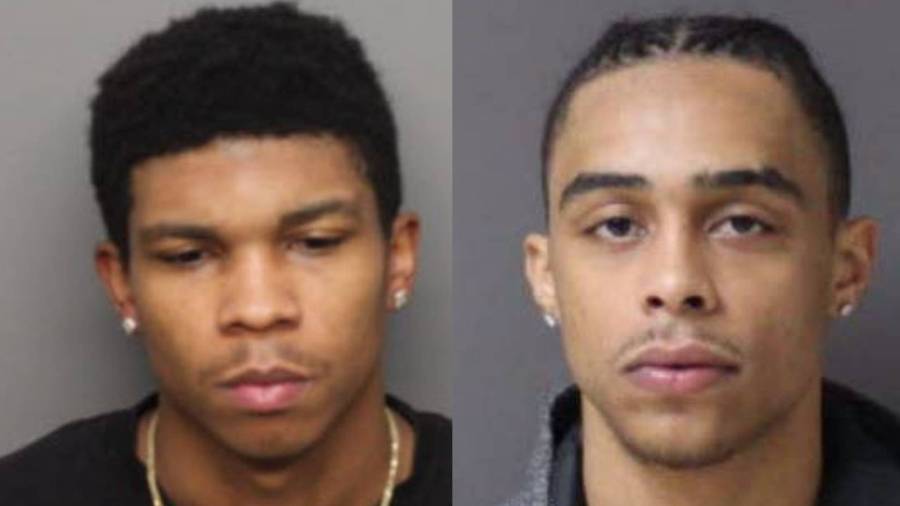 Brandon K. Henderson and Argustas Travis are both charged with two counts of first-degree murder in the shooting deaths of Mario Moore and Courtney Riley.