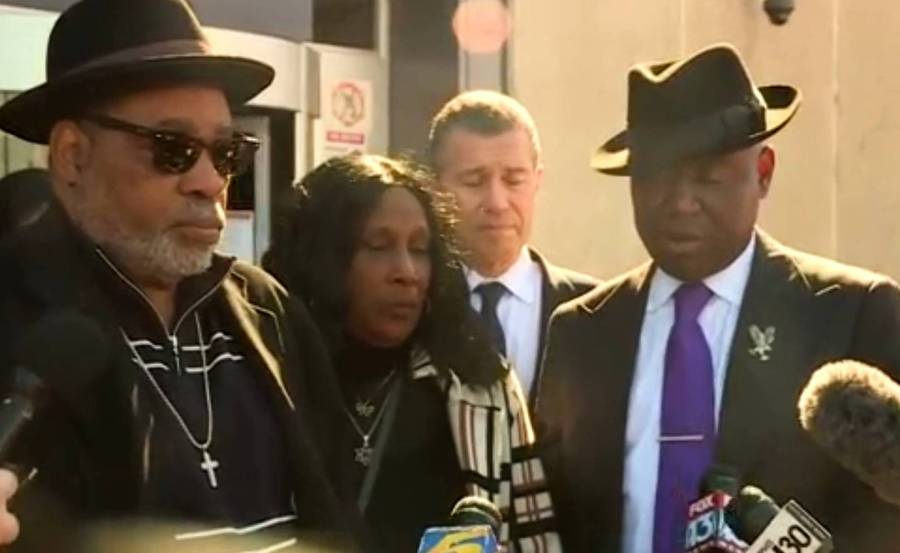 Tyre Nichols’ stepfather, mother and attorneys speak outside a federal courtroom in Memphis after one of the ex-officers, Desmond Mills, agreed to plead guilty.