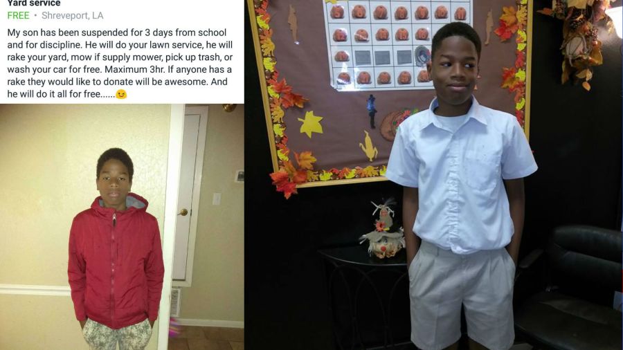Demetris Payne posted to a local Facebook group on Friday that for the 3 days her son was suspended he would be punished by doing free yard work.