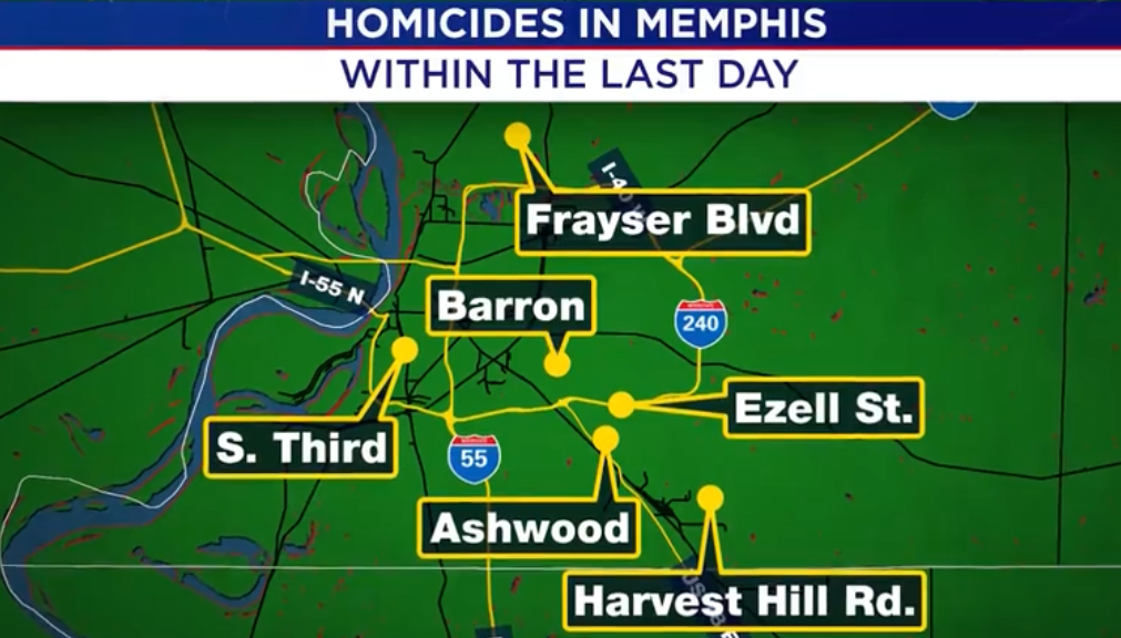 This homicide is one of six we counted in the last day. The map below shows you where in the city the tragedies took place, from Frayser to South Memphis.