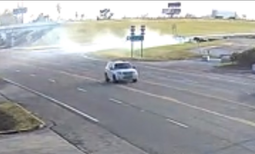 It ended a couple of hundred feet away with a crash and shooting, and the whole thing was captured on a SkyCop Camera.