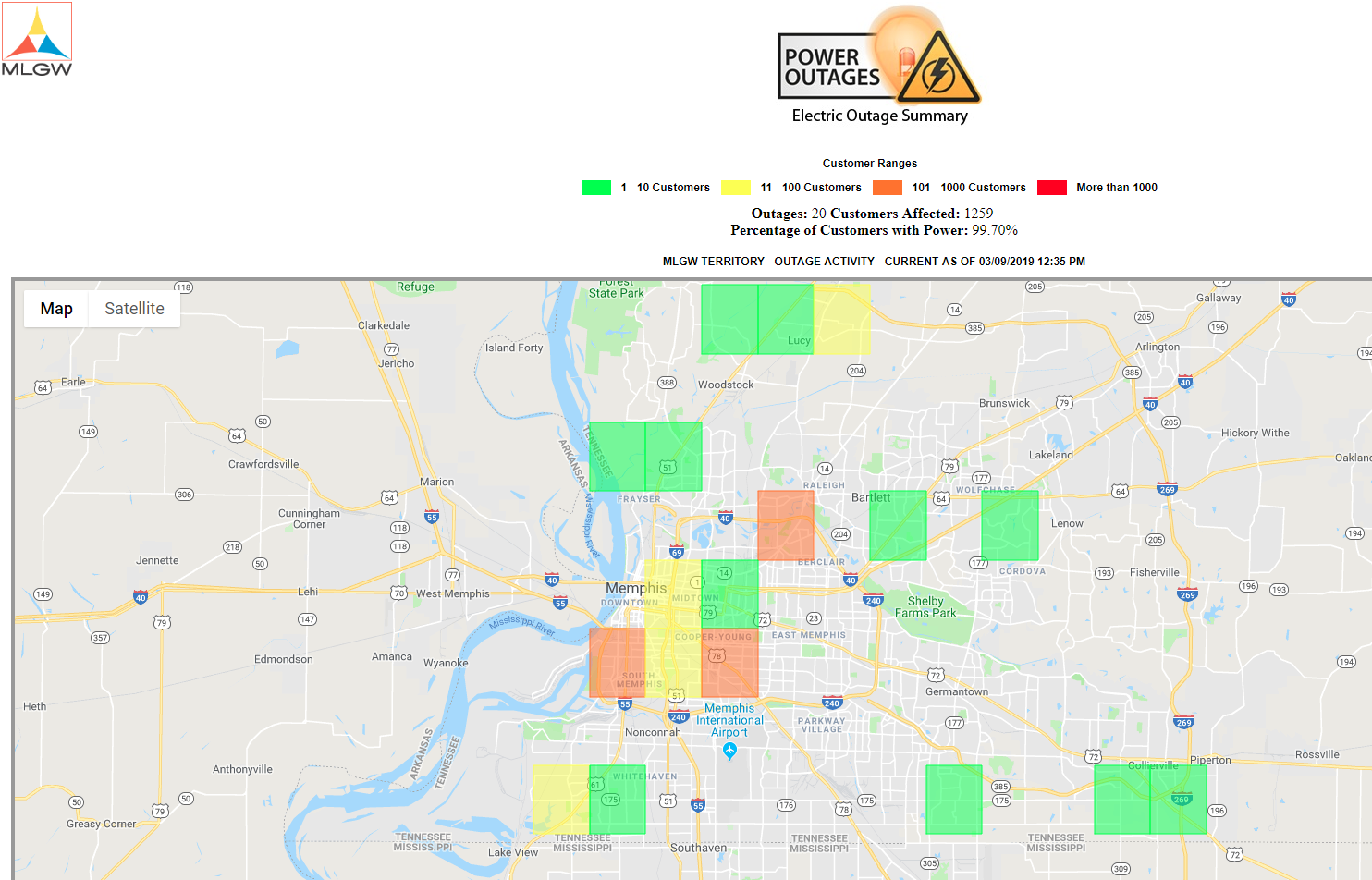MEMPHIS, Tenn. — More than 6000  Memphis residents are without power at this time.
