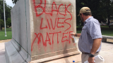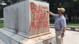 Over the weekend, someone sprayed the words ” Black Lives Matter” on the concrete base supporting the statue of Forrest on horseback.